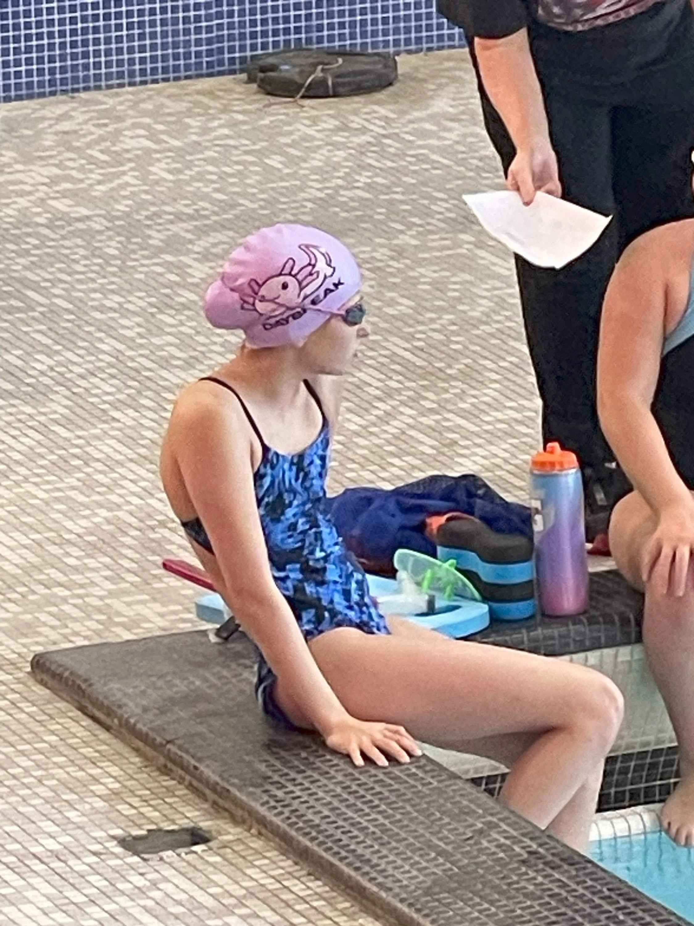 These are now the first caps she reaches for when she has swim! Hands down now her favorite caps! It definitely helps that one came in her favorite color (purple) and she loves axolotls!”